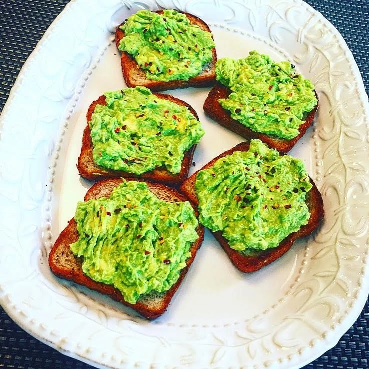 Dinner: Smokey sweet potato burger made with sweet potato, purple onion, leeks, almond flour and white beans with a side of smashed avocado.
